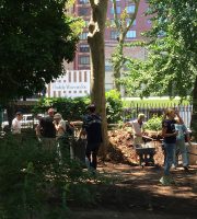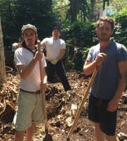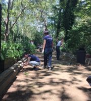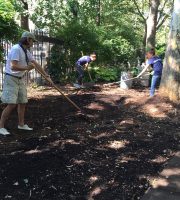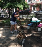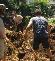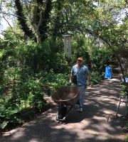 Parks hauled 3 truckloads of compost out of the garden. On Thursday, a wonderful group of volunteers from Ralph Lauren came to add their weight to the Garden’s extensive history of stewarding this beautiful oasis by shoveling out the leftover compost and dumping the fencing. They also swept up and cleaned the bocci court, patio and the walkways. It was a big job and they worked hard.