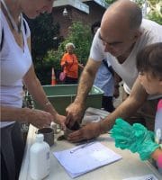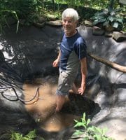 We carried out the first of two treatments for a possible infection of our turtles. This required pumping out the pond, moving our growing fish population to a tank, and dosing the turtles with the medication provided by a veterinarian. Richard and Elizabeth did the difficult process of inserting the medication into the turtles’ stomachs. Ted, Jim and Steve handled the pond duties. Families and kids helped out.