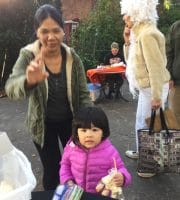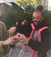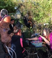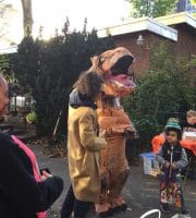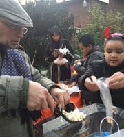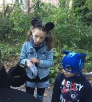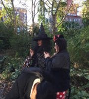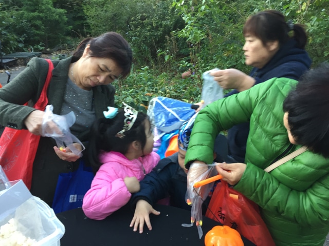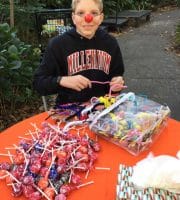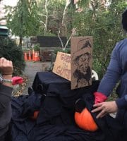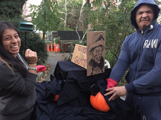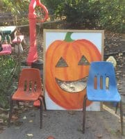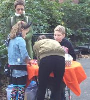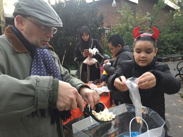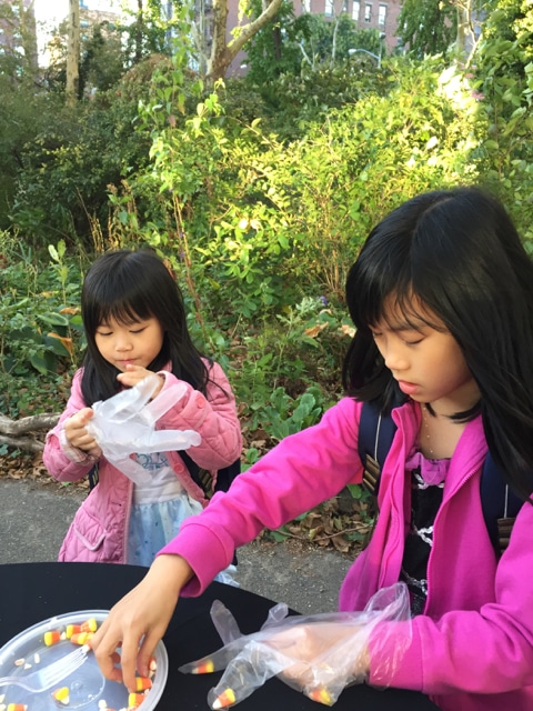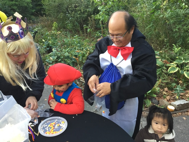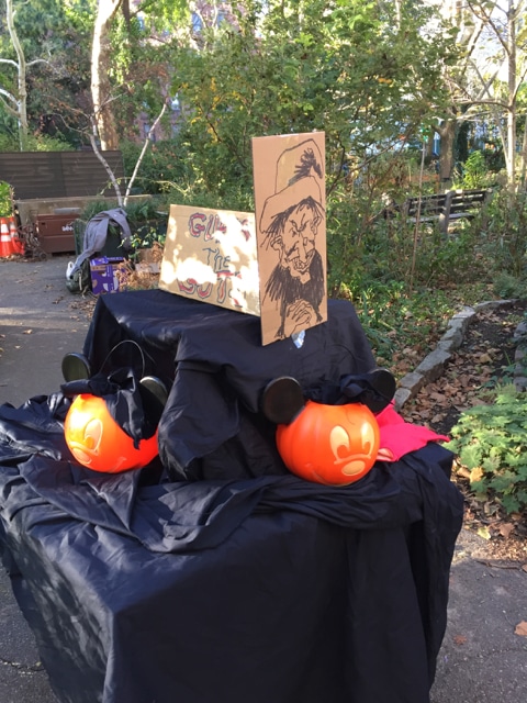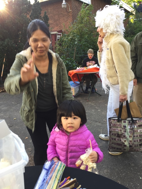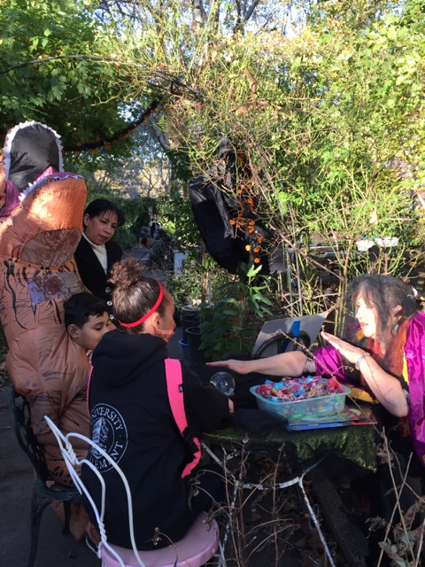 Halloween 2017 was great! A sunny crisp afternoon. Children and parents were greeted by our friendly neighborhood scarecrow (and Jim). They got treats, played beanbag toss, had their palms read, made popcorn hands and guessed the gross and gooey guts.