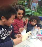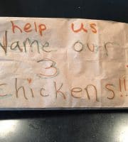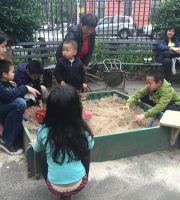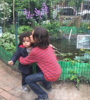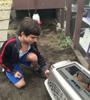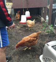 Despite the cloudy cool weather, we had a great afternoon for It’s My Park Day. Farmer Ted brought us three hens (yet to be named). Jen and Karl’s two boys cleaned out the coop, put in fresh dirt, straw and wood chips and welcomed the ladies to their new home. One of them laid an egg while waiting in the crate.