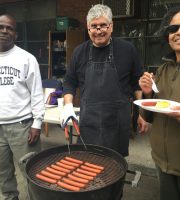 A big group of volunteers from Emma Lazarus High School did a tremendous amount of work in a couple of hours and were rewarded with hot dogs grilled by Bud.