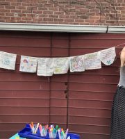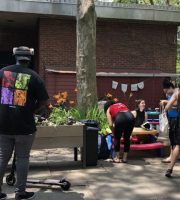 Thanks to Debra’s perseverance, compassion and hard work, along with the effort and sweat of other gardeners, the 2019 celebration of Juneteenth was a great success. Bobby Bryan and his group, along with surprise appearance of Irving Louis Lattin, played two sets that had feet tapping, Debra dancing and more than one little kid mesmerized. Amy and Bud handled the food table. Tracy Gray and daughter introduced the ceremony with lovely thanks to our ancestors. Lamar, Aliya, and Ted read some history. Debra was the hostess with the mostess, with poems and thoughts about the meaning and importance of Juneteenth. Alisanne and Mary Clare, supported by Jenifer, helped kids and adults create commemorative flags.
