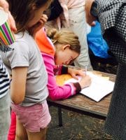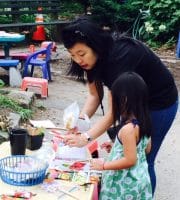 Saturday was MK Garden’s yearly kid’s ladybug release. It was a great success even under gray drizzly skies (weather that the ladybugs seemed to like). More than 50 children participated, and there were a number of families who had never been to the garden before. Many thanks to Ted for producing the publicity, Pan for supplying the ladybugs, Bud for being the chief ladybug handler – along with the excellent help of Rie and her daughter Ro, Kate for bringing the snapdragons (on the subway) for the kids to plant, Bob for running the food table and making most excellent lemonade, Steve for taking pictures for the web site and all the other volunteers who helped make it a successful event.