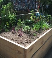 Bob has also been busy staining the new bench rails that Parks installed recently. He has also headed up the plantings in the new raised bed.