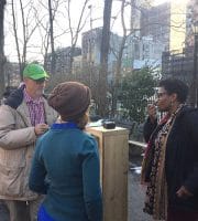 Green Thumb, the community garden outreach agency of the Parks Department visited last week and conducted a workshop about raised bed gardening, including the construction of a wheelchair accessible raised bed next to the bocce court.