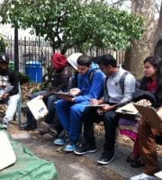 We had Tenzer Learning Center High School class in today too. They are ESL students and they came to see the garden, learn about it and practice English by interviewing Bob, Jenifer and K. They were wonderful: from Bangladesh, India, Nepal, Dominican Republic, China and Mexico. Smart, good natured and asked better questions than we ever get from newspaper reporters!